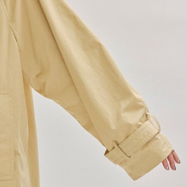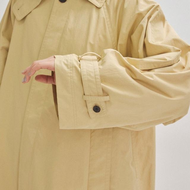 コロンとしたフォルムスリーブと、見頃のAラインシルエットがポイントのひざ下丈ステンカラーコート。