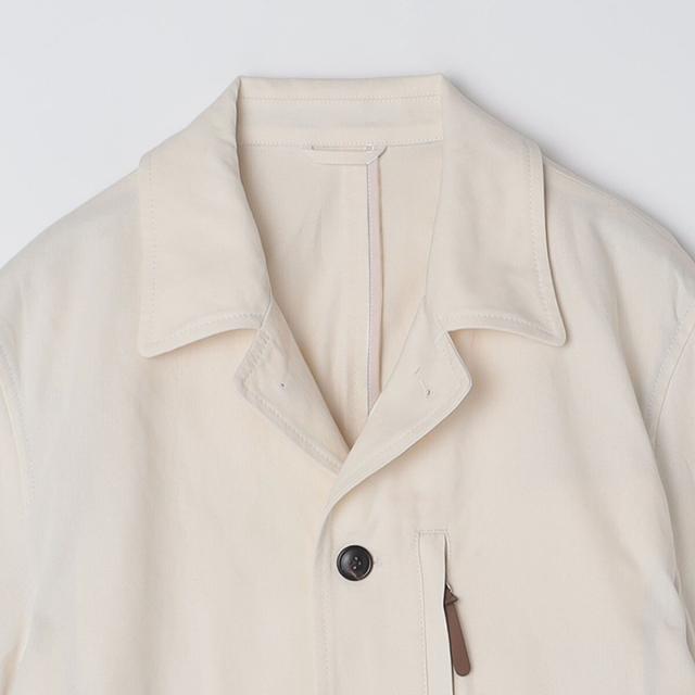 襟腰、胸ポケットの引き手には、アクセントに合成皮革を用いるなど、細部のディテールまでこだわりました。