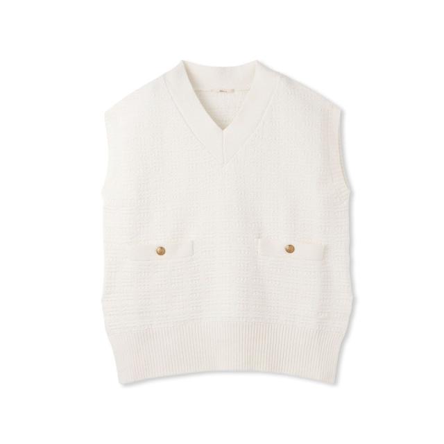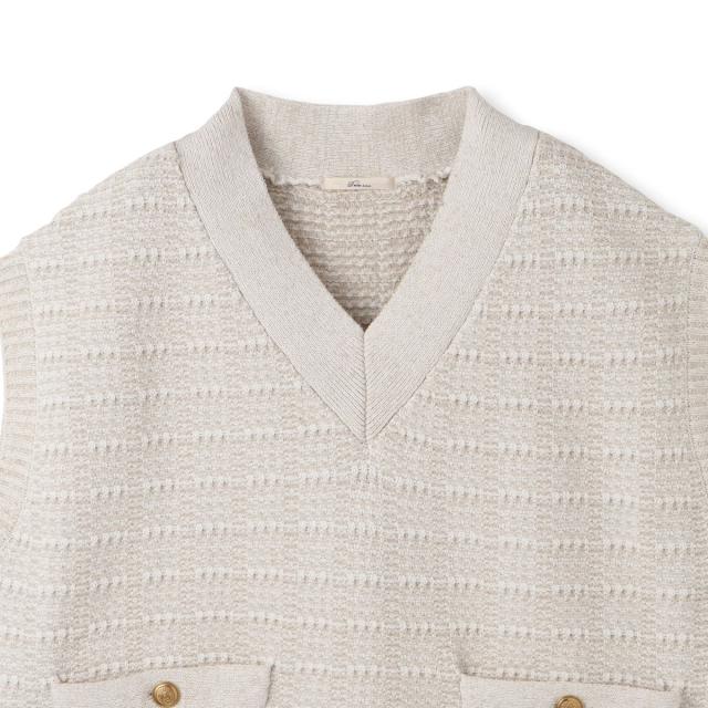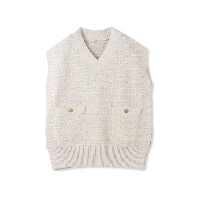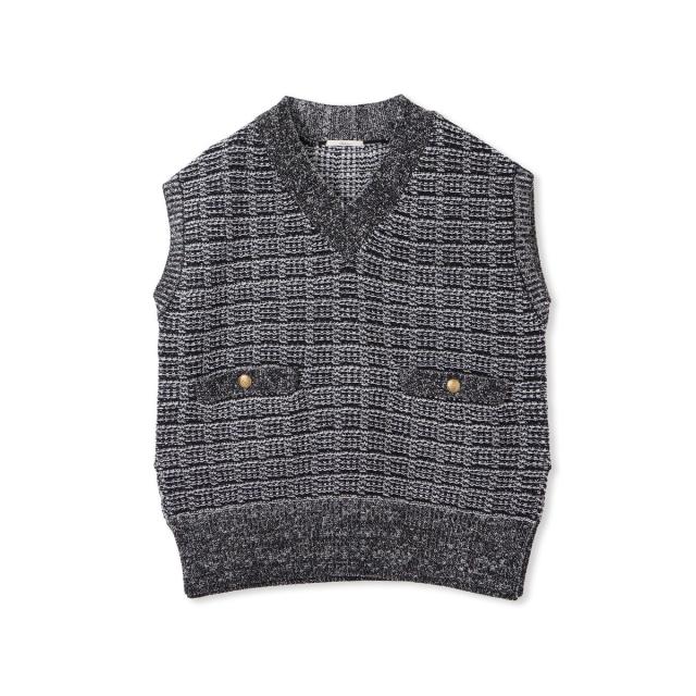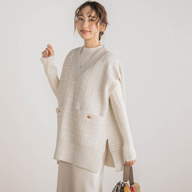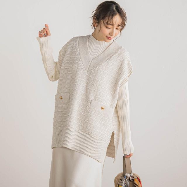 冬のスタイルに華やかさをプラスしてくれるツイード調ニットのベスト。