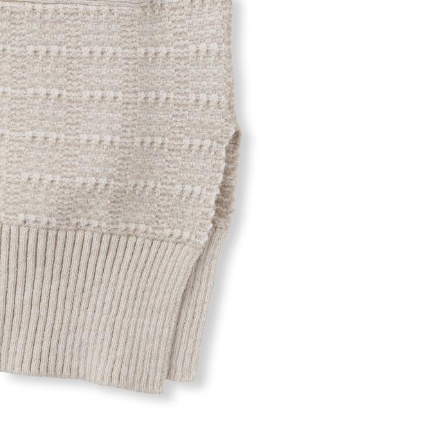 異なる糸をミックスさせ色味に奥行きがあるツイード調に編み立てました。