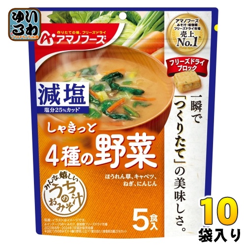 アマノフーズ フリーズドライ 減塩うちのおみそ汁 4種の野菜 5食 10袋 (1袋入×10 まとめ買い) お味噌汁 FD インスタント 即席 味噌汁 個包装 しゃきっと