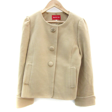 【中古】アプワイザーリッシェ ノーカラーコート ショート丈 アンゴラ混 ビジュー 1 ブラウン レディース