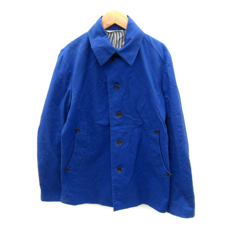 【中古】エディフィス EDIFICE ステンカラーコート スプリングコート ショート丈 無地 40 L 青 ブルー /SY24 メンズ