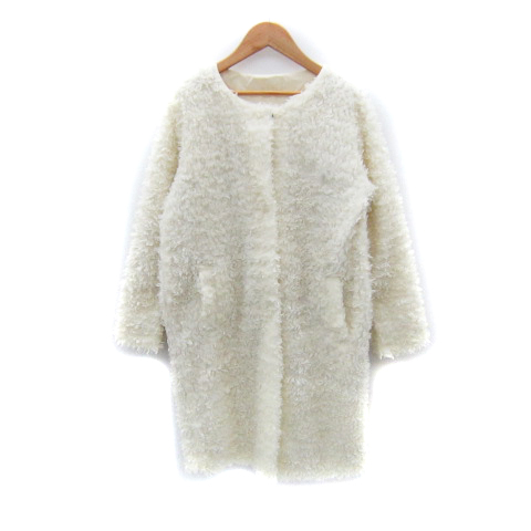 【中古】リシェグラマー プードルファーコート ノーカラーコート ロング丈 無地 M 白 ホワイト /SY4 レディース