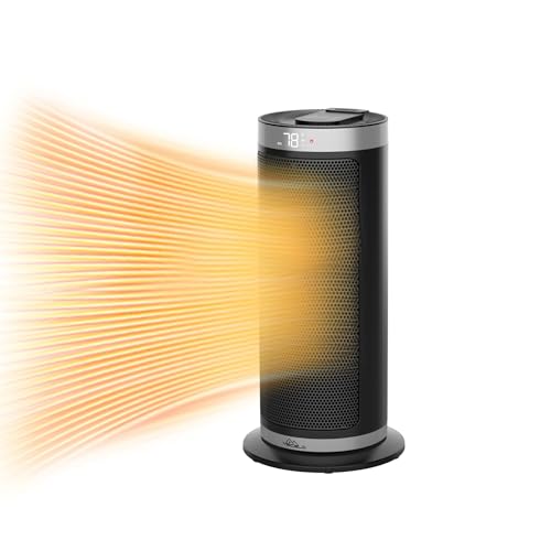 VECELO ヒーター セラミックヒーター 電気ファンヒーター 900W/1200W 2秒速暖 3段階切替 145°首振り リモコン付き 省エネ ~8畳 転倒オフ 過熱保護機能搭載 LEDディスプレー表示 タイマー機能 電気ヒーター 足元