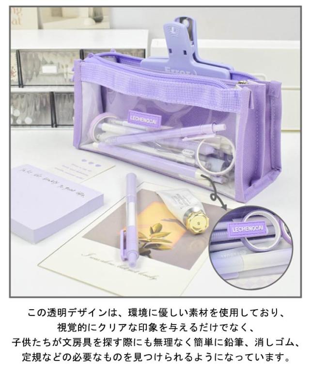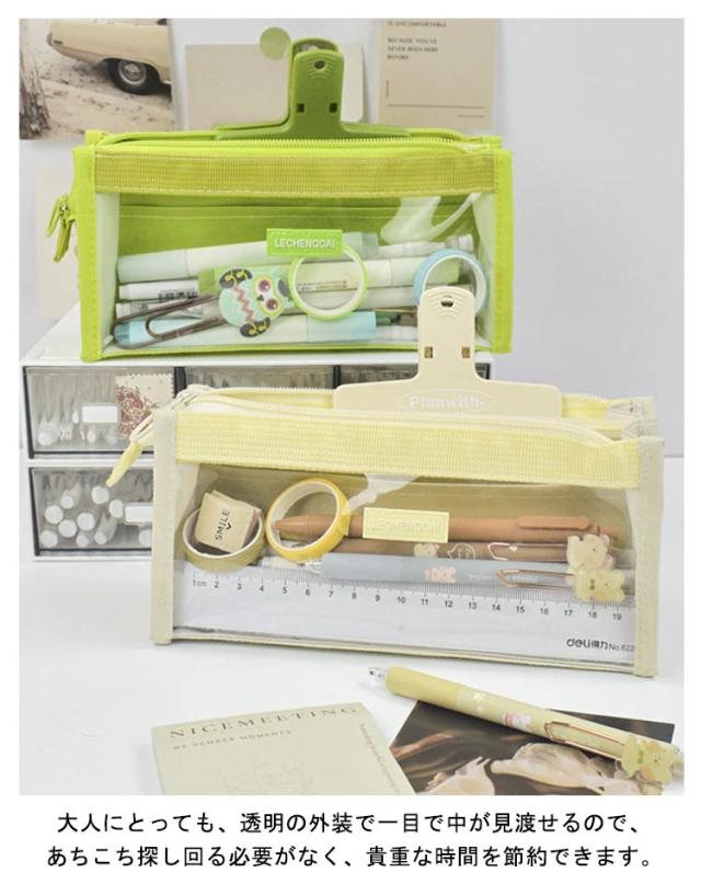 | この透明デザインは、環境に優しい素材を使用しており、視覚的にクリアな印象を与えるだけでなく、子供たちが文房具を探す際にも無理なく簡単に鉛筆、消しゴム、定規などの必要なものを見つけられるようになっています。 大人にとっても、透明の外装で一目で中が見渡せるので、あちこち探し回る必要がなく、貴重な時間を節約できます。 特大の開口部デザインを採用しているため、中身を整理しておくのが簡単で、取り出しも便利です。 コンパクトで洗練されたサイズなので、リュックサック、ビジネスバッグ、ハンドバッグにすっぽり収まり、余分なスペースを取りません。 | |