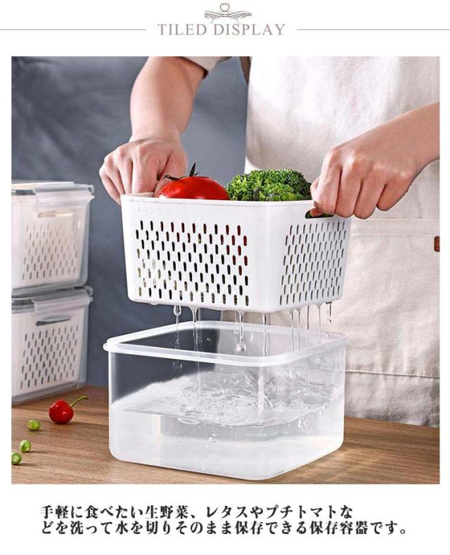 冷蔵庫 水切り 冷蔵庫収納ボックス 冷蔵庫 保存容器 野菜ストッカー 野菜 食品保存容器 冷蔵庫収納ケース 整理 蓋付き キッチン収納ケース 冷蔵庫整理ケース 野菜 保存 収納ストッカー