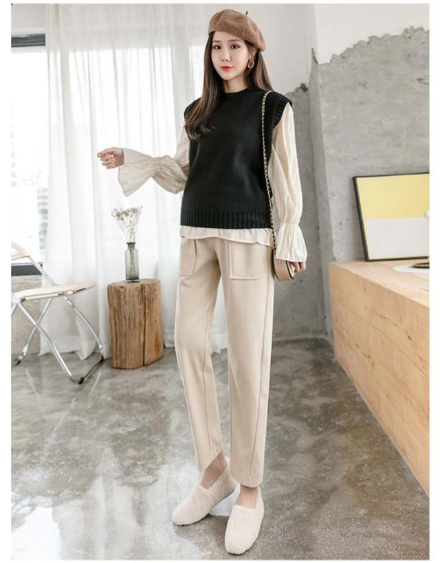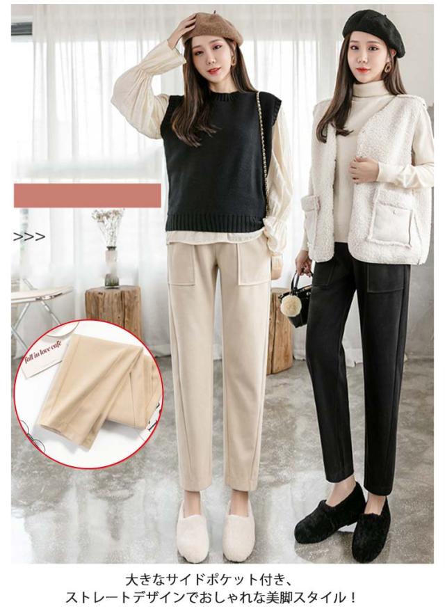 パンツ ウールライク レディース ロングパンツ マタニティパンツ ウールライク サルエルパンツ 秋冬 保温 ハイウェスト ボトムス 調節可能 長ズボン アジャスター付き M L XL