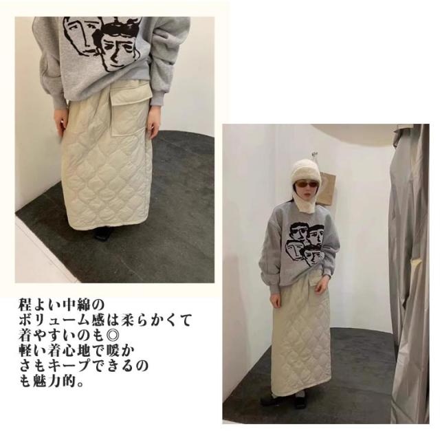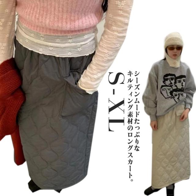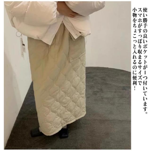 秋冬 キルト キルティング マキシスカート 中綿 あたたかい 中綿スカート ロングスカート カーゴスカート 暖かい キルティングスカート 防寒 レディース タイトスカート ロング丈 ボトムス 大きいサイズ きれいめ 可愛い