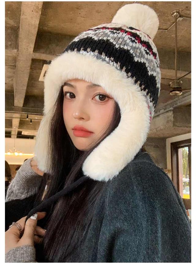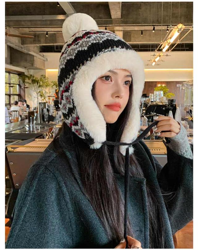 | 【可愛いフェアアイル柄、ポンポン付き!】 耳あて付きニット帽子! 機能性とデザイン性を兼ね備えて、秋冬コーデのアクセントになれる。 裏起毛仕様なのでとても暖かく防寒性が高いです。 秋冬の外出、自転車を乗る時最適なアイテムです。 | |