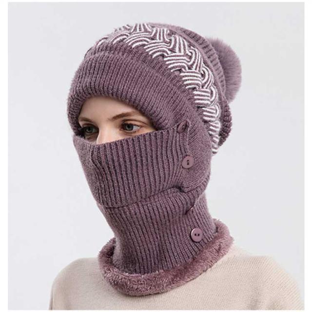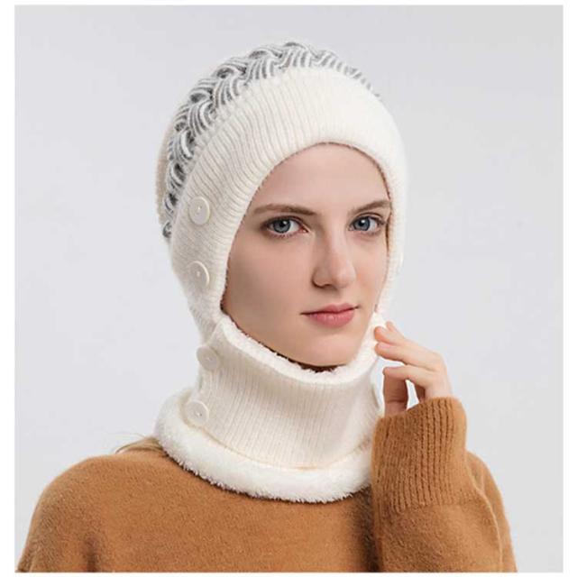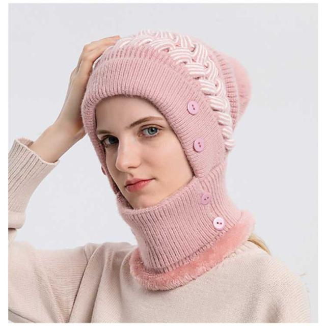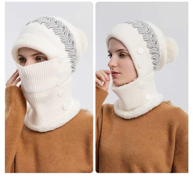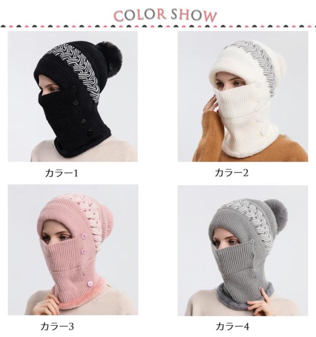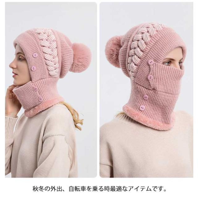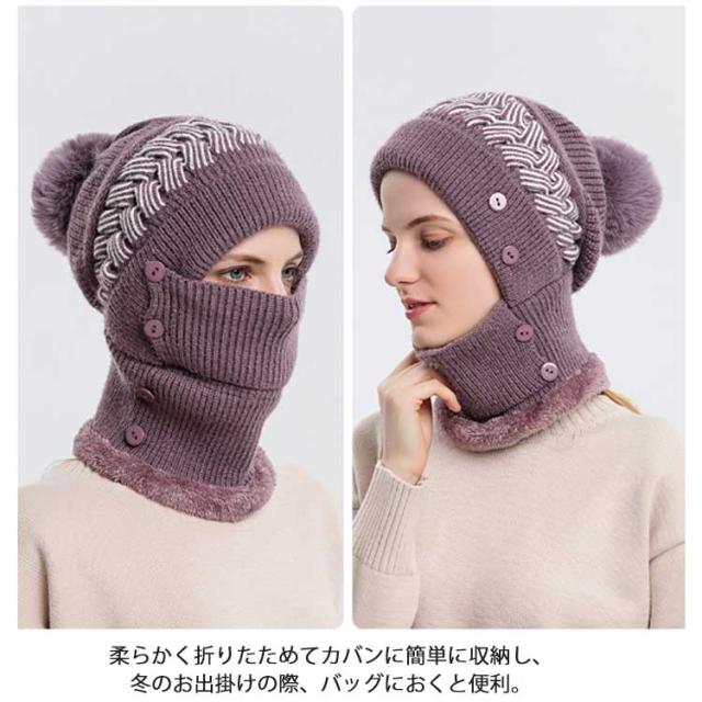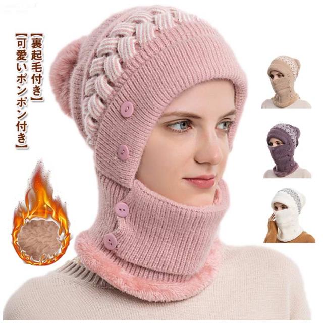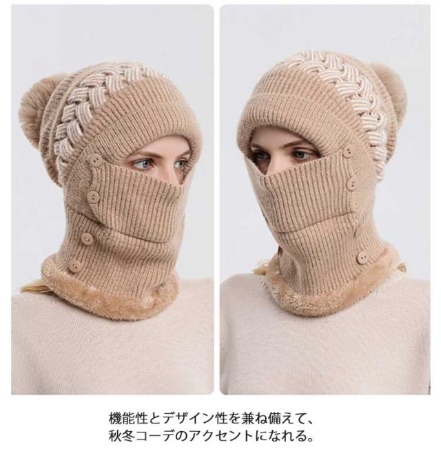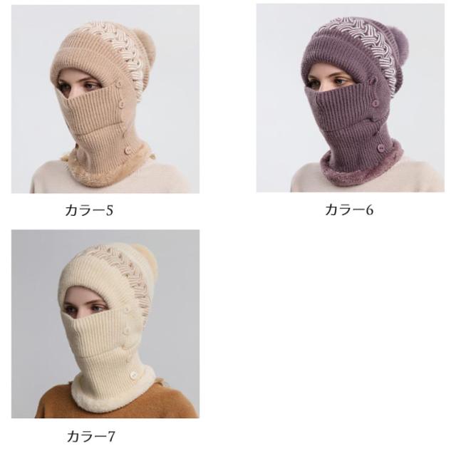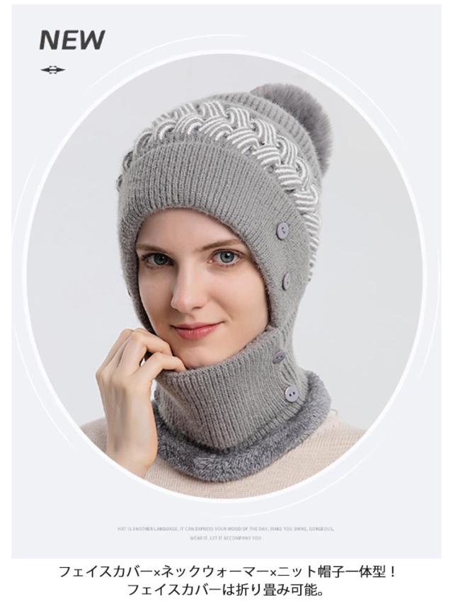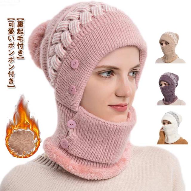 一体 ネックウォーマー ニット帽 レディース 保温 フェイスカバー付き ポンポン付き ニットキャップ 帽子 裏起毛 防寒 ニット帽 目出し帽 ニット帽子 暖かい アウトドア スポーツ