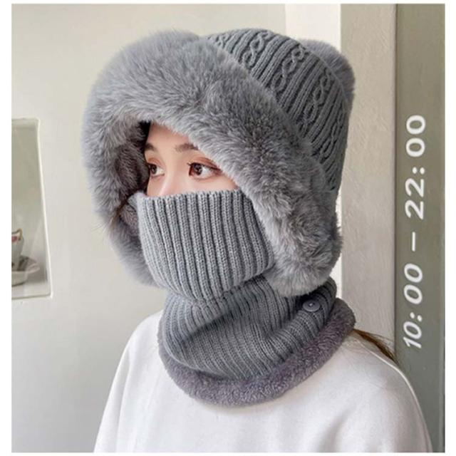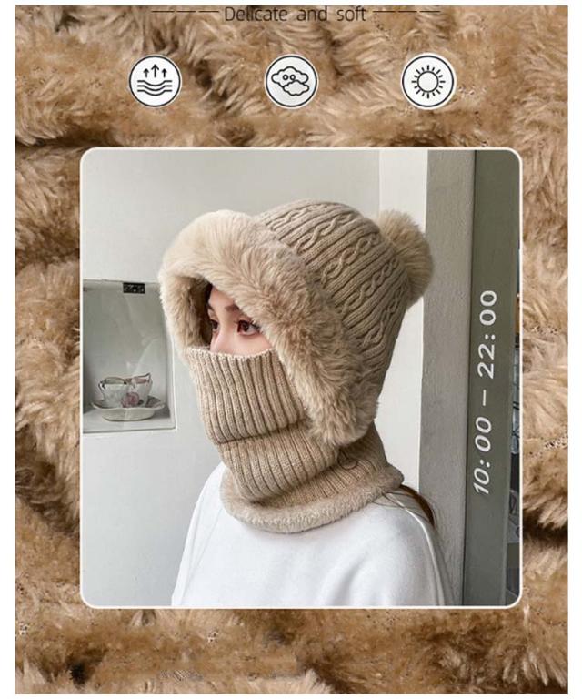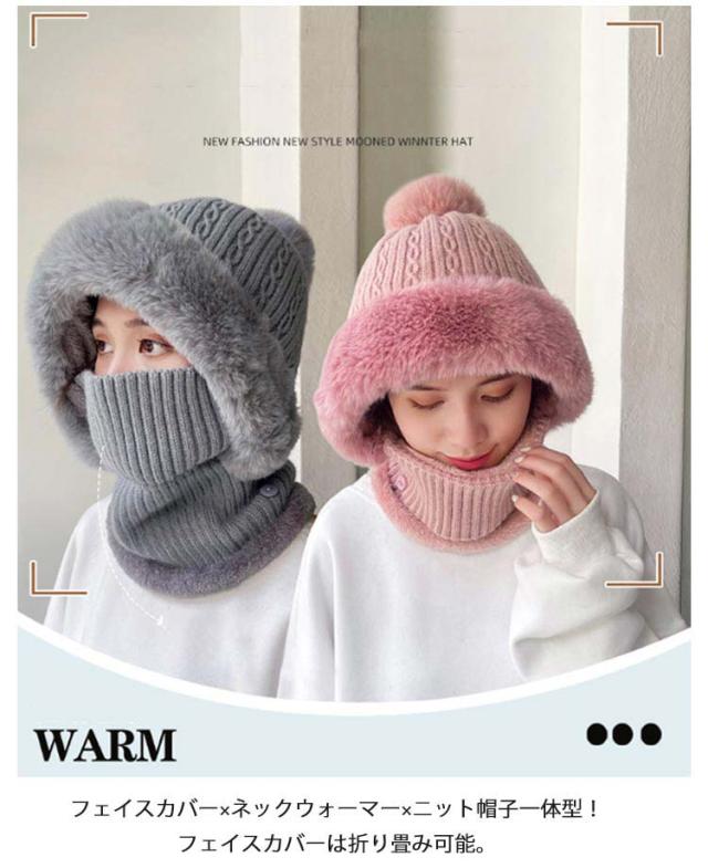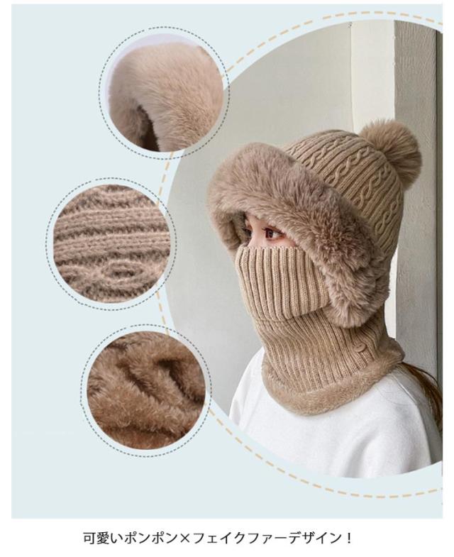 | 【フェイクファー付き】【裏起毛付き】 フェイスカバー×ネックウォーマー×ニット帽子一体型!フェイスカバーは折り畳み可能。 可愛いポンポン×フェイクファーデザイン! 機能性とデザイン性を兼ね備えて、秋冬コーデのアクセントになれる。 裏起毛仕様なのでとても暖かく防寒性が高いです。 秋冬の外出、自転車を乗る時最適なアイテムです。 柔らかく折りたためてカバンに簡単に収納し、冬のお出掛けの際、バッグにおくと便利。 | |