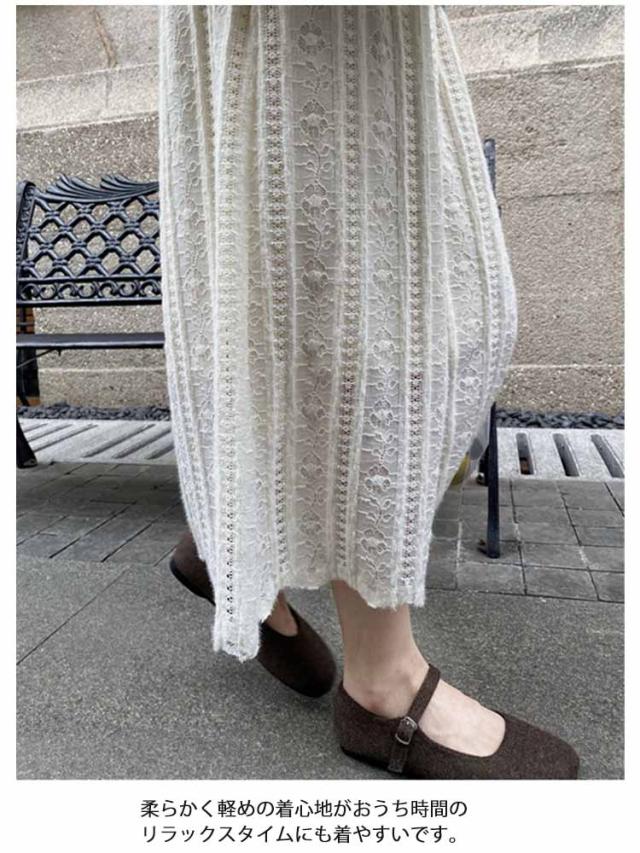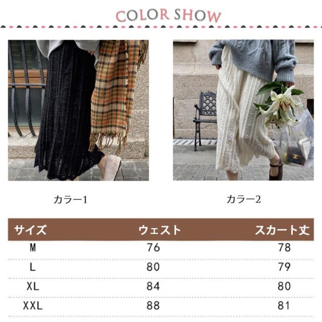 Aライン 裏起毛 スカート ロング レーススカート 透かし編み スカート 透かし編み ロングスカート 大人 可愛い お呼ばれ 美脚 アジャスター付き エレガント フェミニン M L XL
