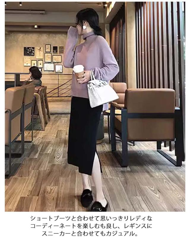 | スリット入りタイトスカートも秋冬はニット素材がお目見え。 女性らしいラインながらニットなので暖かく、動きやすいのも嬉しいです。 ショートブーツと合わせて思いっきりレディなコーディーネートを楽しむも良し、レギンスにスニーカーと合わせてもカジュアル。 ウエストにはアジャスト機能付き、妊娠初期から産後まで履けるデザインで、ノンストレスな着用感。 ストレッチ性優れるなので、動くやすい一枚です! | |