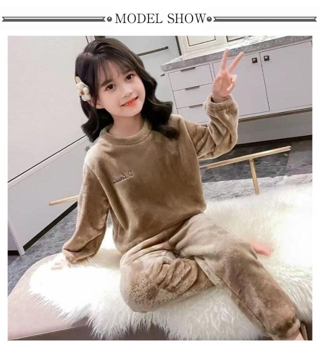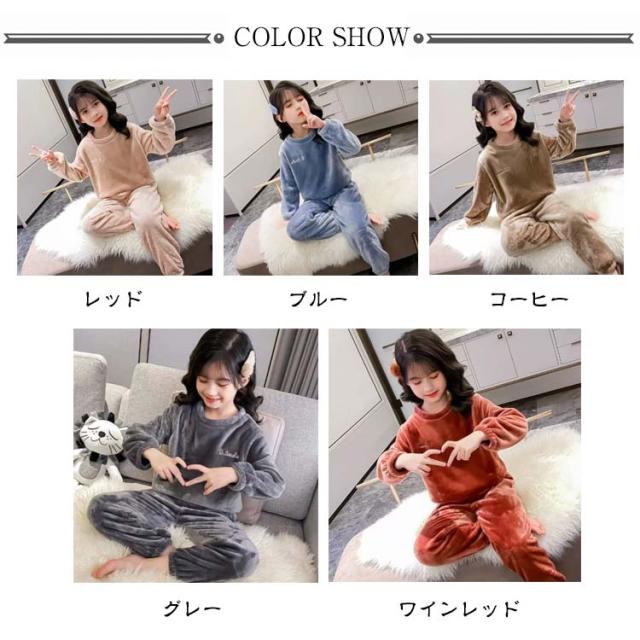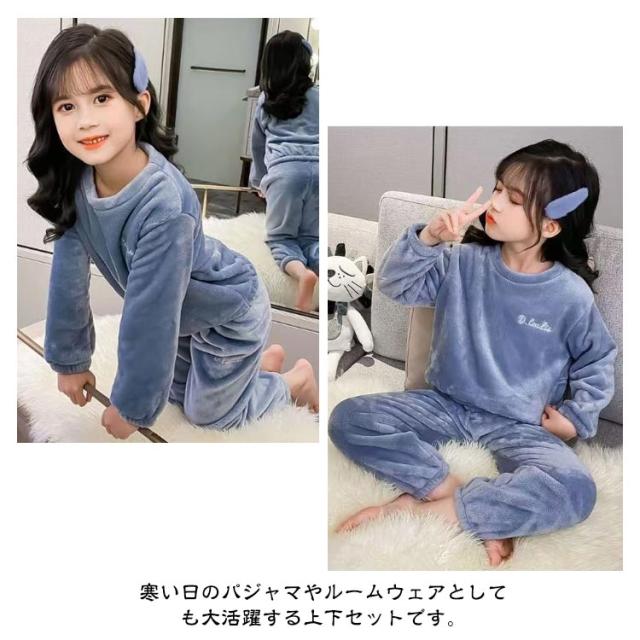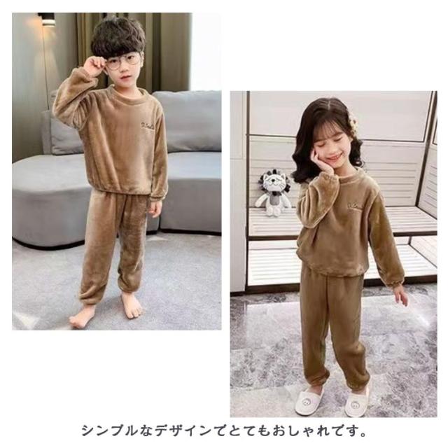 | 100-160cm!ふわふわで暖かいキッズルームウェア!シンプルなユニセックスなデザインの子供パジャマ。 シンプルなデザインでとてもおしゃれです。 手首や足首にもゴムが入っているのでしっかり寒さを防げます! 寒い日のパジャマやルームウェアとしても大活躍する上下セットです。 | |