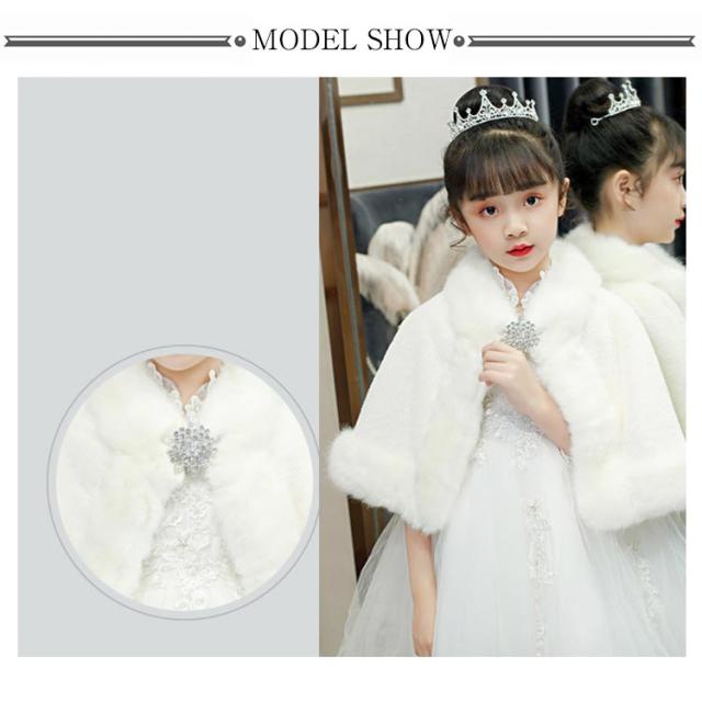 | 羽織でドレスが一気に華やかに♪ あったか、ふわっふわのゴージャスファーマント。 優しい素材でお子様の肌にも安心の作りです。 柔らかく暖かいふわふわのファー素材の子供用ケープで、 身ごろは柔らかな裏生地付きで脱着も簡単。 ノースリーブのドレスの防寒用としてはもちろん 寒い日の結婚式やクリスマスパーティー、誕生日会のお呼ばれに大活躍♪ | |