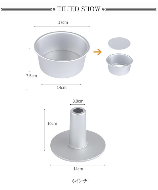 | 6インチ ケーキ型+プリン芯型の2点セット アルミ製で熱伝導がよく、熱ムラがなくふっくらきれいに仕上がります。 煙突部分につなぎ目がなく離型もお手入れも簡単! 底板は取り外し可能なので生地を外しやすいです。 | |