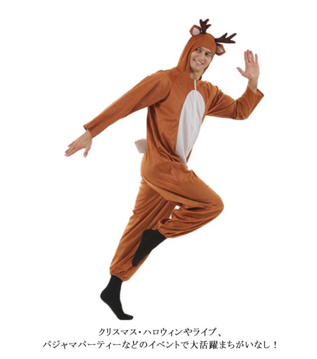 | 可愛いトナカイのフリース着ぐるみが登場♪ フリースならではの優しい肌ざわりと、フード付きはポイントです。 クリスマス・ハロウィンやライブ、パジャマパーティーなどのイベントで大活躍まちがいなし! もちろんご自宅用のルームウェアとしてもご使用いただけます。 フリース素材なので、屋内のみならず野外でも着用していただけます。 大人男女兼用フリーサイズとなっております。 友達やカップルでお揃いにするのもオススメです♪ | |
