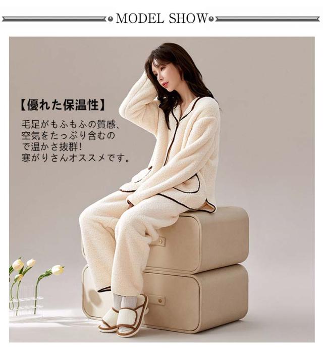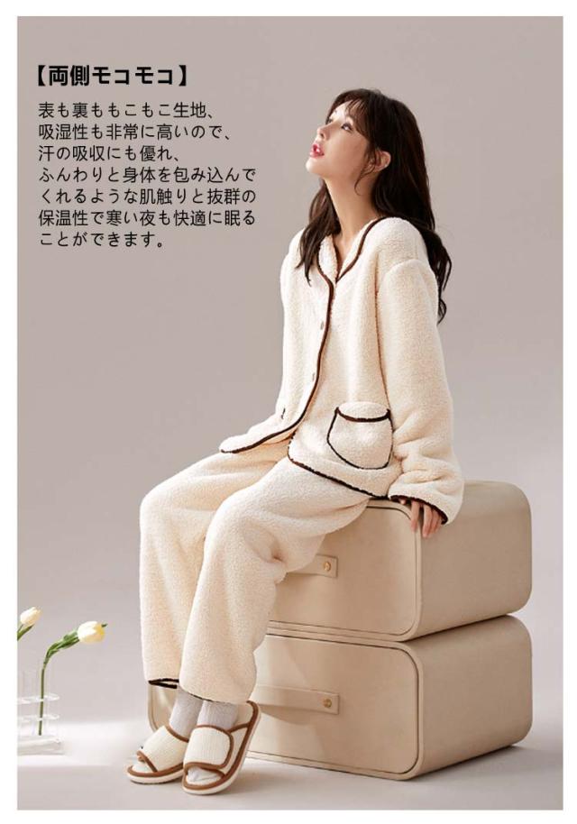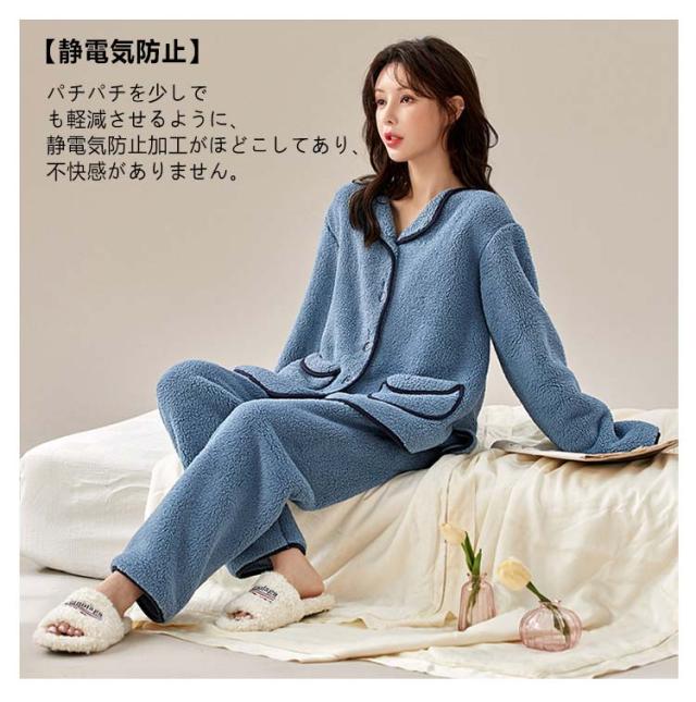 もこもこ 羽織 ふわふわ レディース 着る毛布 長ズボン セットアップ 静電気防止 パジャマ 部屋着 ボタン ルームウエア 対策 着る毛布 秋冬 ポケット vネック フランネル あったか 暖かい ナイトウエア 寝巻き マシュマロ かわいい