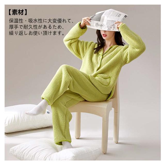 | 【気持ちいい柔らかさと暖かさの上下パジャマセット】 【素材】高質量なポリエステル生地を採用し、モコモコの起毛素材は軽くて柔らかく滑らかな肌触り、マシュマロのような柔らかタッチ。保温性・吸水性に大変優れて、厚手で耐久性があるため、繰り返しお使い頂けます。 【優れた保温性】毛足がもふもふの質感、空気をたっぷり含むので温かさ抜群!寒がりさんオススメです。ふわふわの毛布のように暖かく全身を包んでくれます。冷え対策に、防寒ルームウェアにも大活躍!ご自宅用にはもちろん、ギフトにもぴったりなアイテム。 【両側モコモコ】表も裏ももこもこ生地、吸湿性も非常に高いので、汗の吸収にも優れ、ふんわりと身体を包み込んでくれるような肌触りと抜群の保温性で寒い夜も快適に眠ることができます。パチパチを少しでも軽減させるように、静電気防止加工がほどこしてあり、不快感がありません。 【静電気防止】パチパチを少しでも軽減させるように、静電気防止加工がほどこしてあり、不快感がありません。[静電気の発生を抑える加工であり、完全に除去できるものではございません。] 【プレゼント】ぽかぽか温かいので、パジャマとしても部屋着としてもOK。誕生日プレゼント、お祝いの品等、様々な場面で贈り物としてご利用ください。家族でお揃いにするのもおすすめです。 | |