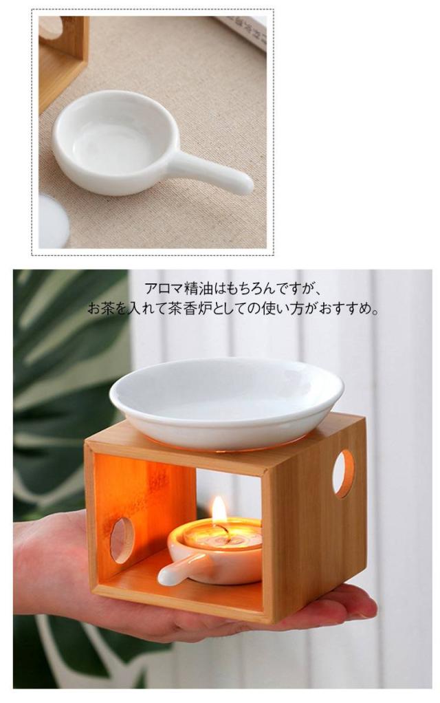 | シンプルでナチュラルな茶香炉セット。 竹製のナチュラルな茶香炉はインテリアにも馴染んで優しい雰囲気。 和室にも洋室にも合う、インテリアとしてもおすすめ! 香炉皿は本体から取り外せるので、中身の交換をしやすくGOOD! 洗いやすく、いつも清潔に使えます。 アロマ精油はもちろんですが、お茶を入れて茶香炉としての使い方がおすすめ。 | |