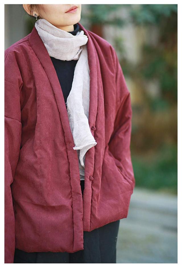 | ジャケットタイプ綿入れ半纏。 おしゃれなデザイン、外でも着用できる半纏をお探しの方にもおすすめ。 中綿を入れているため、暖かさを逃がさず、ふっくらとした着心地です。 袖にかけて細くなるシルエット、家事の時も邪魔せずに、動きやすい。 | |