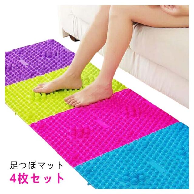 4枚セット!足つぼマット 4枚セット!足つぼマット つぼ押しグッズ 足裏マット ジョイント式 繋げる カラフル コンパクト フットマット デコボコ 長方形 足踏み 足裏刺激 マッサージマット 足裏マッサージ