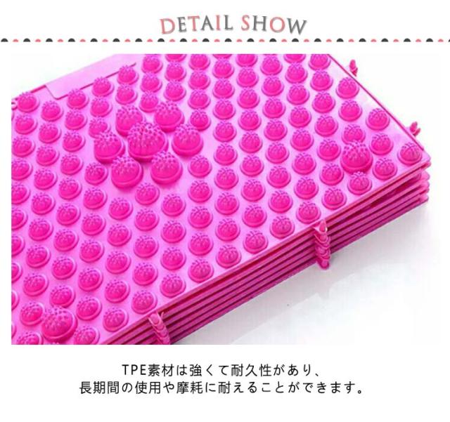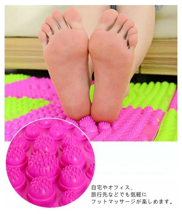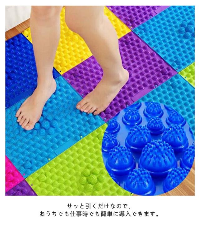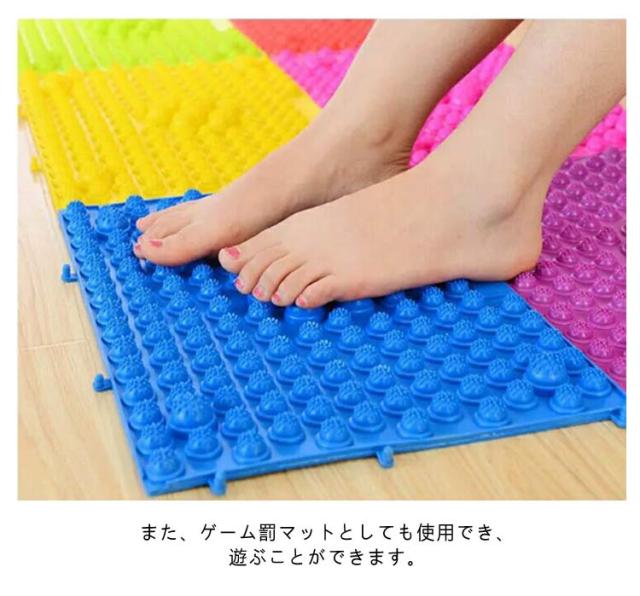 | 【4枚セット】【足つぼマット】 お手軽に足裏を刺激できるフットマットです。 組み合わせて使うこともできるジョイントタイプ。 サッと引くだけなので、おうちでも仕事時でも簡単に導入できます。 また、ゲーム罰マットとしても使用でき、遊ぶことができます。 自宅やオフィス、旅行先などでも気軽にフットマッサージが楽しめます。 TPE素材は強くて耐久性があり、長期間の使用や摩耗に耐えることができます。 | |