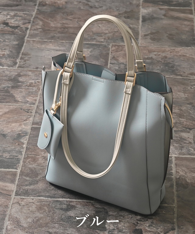 トートバッグ バッグ 鞄 2way 合皮 フェイクレザー ポーチ付き A4サイズ対応 タブレット用ポケット レディース Honeys ハニーズ ハンドル2wayトート