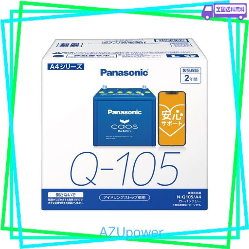 パナソニック(PANASONIC) 国産車バッテリー カオス N-Q105/A4 CAOS アイドリングストップ車用 安心サポート付き