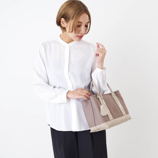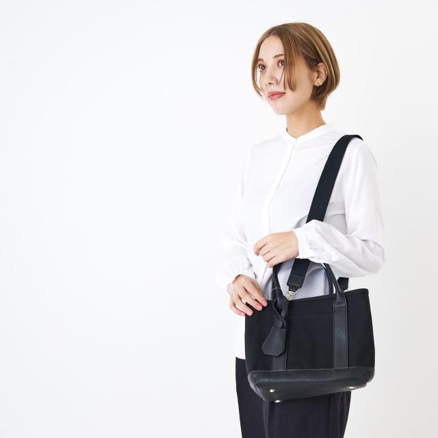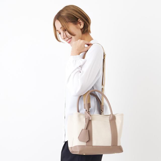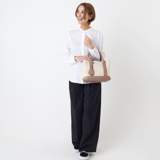 通年使えるキャンバス素材が使い勝手の良いトートバッグ。長財布、500mlペットボトル、ポーチなどお出かけに必要な物が入る普段使いにピッタリなサイズ。