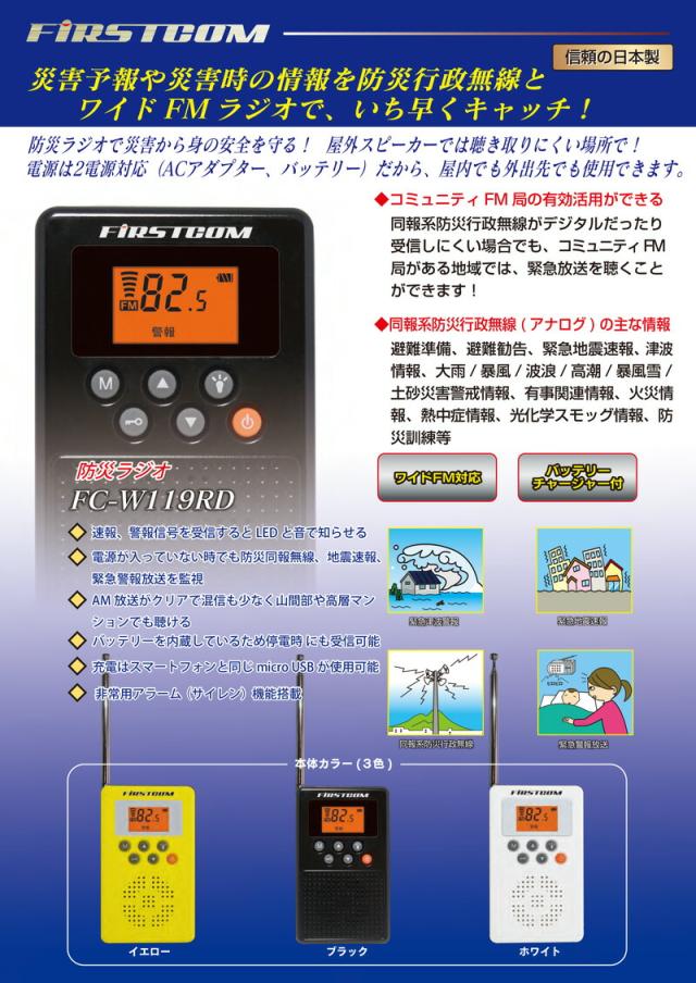 防災ラジオ 日本製 ラジオ 使い方 防災ラジオ ワイドFM おすすめ FM AM 人気 災害 防災 効果 防災グッズ 比較 防災用品 ランキング 女性 男性 レディース メンズ 充電式 誕生日 母の日 父の日 敬老の日 クリスマス ギフト プレゼント 贈り物 携帯ラジオ 口コミ 防災用ラジオ クチコミ ポータブルラジオ レビュー FC-W119RD FCW119RD FC-W-119-RD FC-W119RD(W)BK 黒 ブラック FC-W119RD(W)WH 白 ホワイト FC-W119RD(W)YEL 黄色 イエロー 評判 F.R.C エフ・アール・シー FRC エフアールシー 通販 google グーグル yahoo ヤフー LINEショッピング 楽天市場