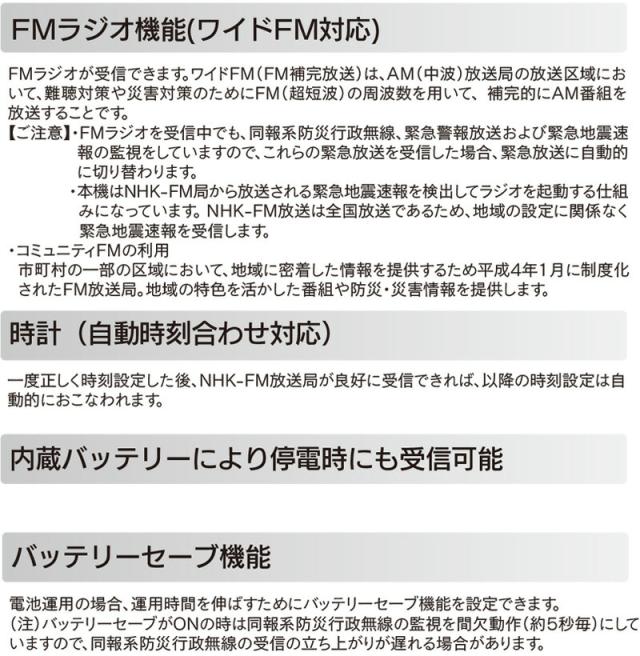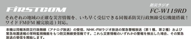 F.R.C 日本製 防災ラジオ FC-W119RD エフ・アール・シー もしもに備える 防災ラジオ 緊急時 災害情報 いち早くキャッチ ワイドFM対応 防災行政無線 充電式 2電源対応 携帯ラジオ ![]() ![]() ![]() ![]() ![]() ![]() ![]() ![]() ![]() | ||||