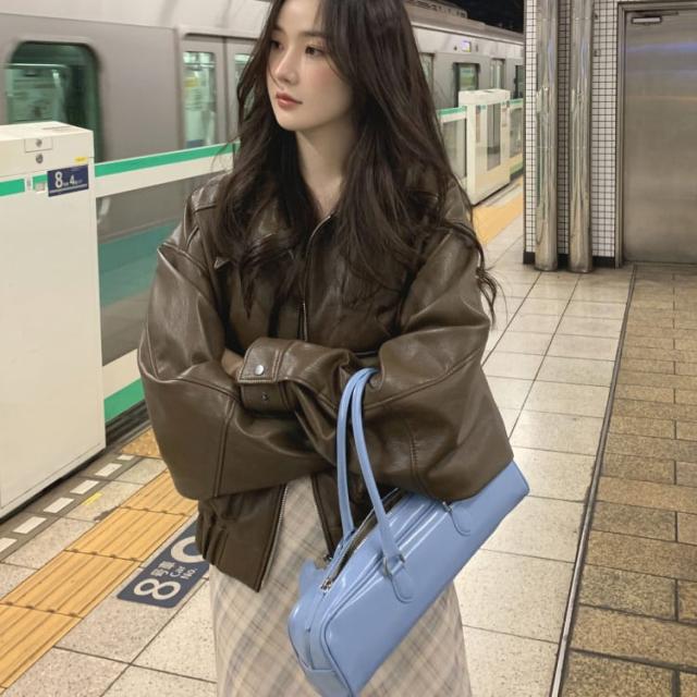 レザージャケット レディース ライダース オーバージャケット PUレザー アウター ボリュームスリーブ 革ジャン コーデ pLegLad店 シングル ライダースジャケット ストリート系 ゆったり 大人 きれいめ 上着 韓国ファッション 袖ボリューム バルーンスリーブ カジュアル 黒