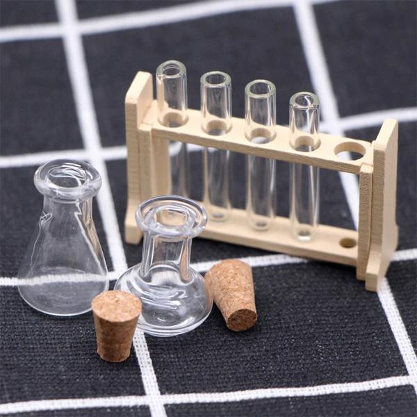 ドールハウス ドールハウスアクセサリー 実験室装飾玩具用ラック付きミニチュアテストチューブ 1セット 1:12