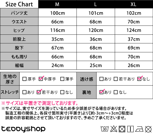 製造工程の関係上、各採寸箇所実寸(平置き)より【約-3cm〜+3cm】程度は