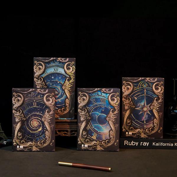フルカラーのイラスト付きノートブック レトロな宇宙時計 ホットスタンプ ハードカバー a5メモ帳 オフィス学習日記 新しい 1冊あたり128枚