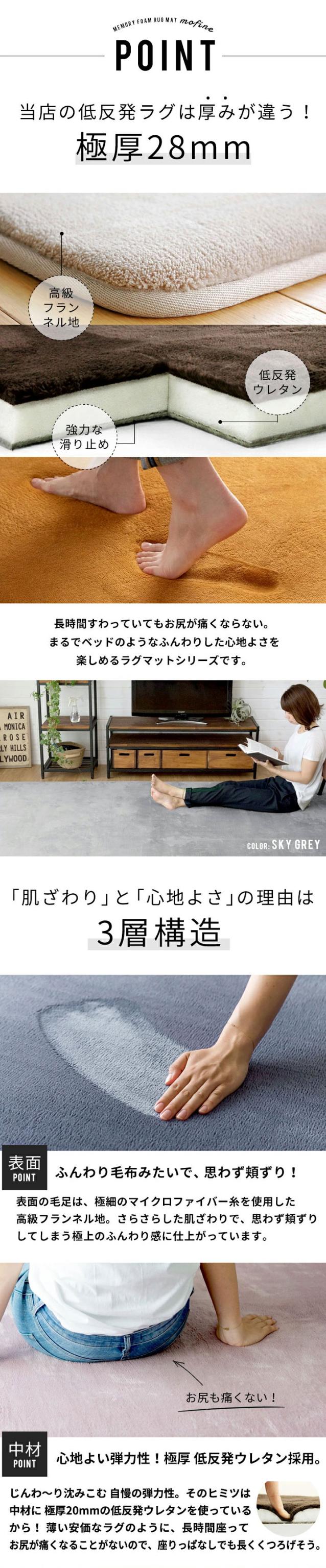 ・素材: 表面は極細のマイクロファイバー糸を使用した高級フランネル地、中材は20mmの低反発ウレタン、裏面はノンスリップ加工の施された不織布を使用。