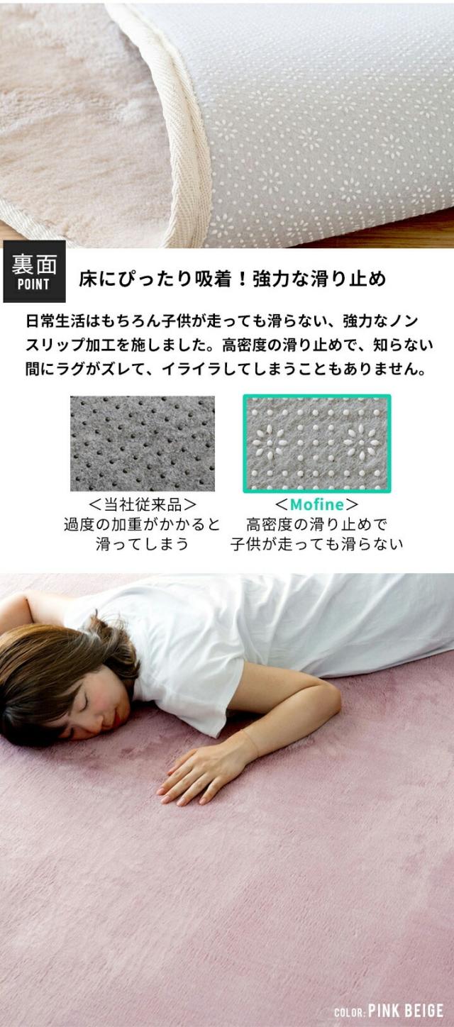 表面に使用されているマイクロファイバー糸は肌触りが良く、お子様やペットが安心して過ごせるラグマットとしておすすめです。