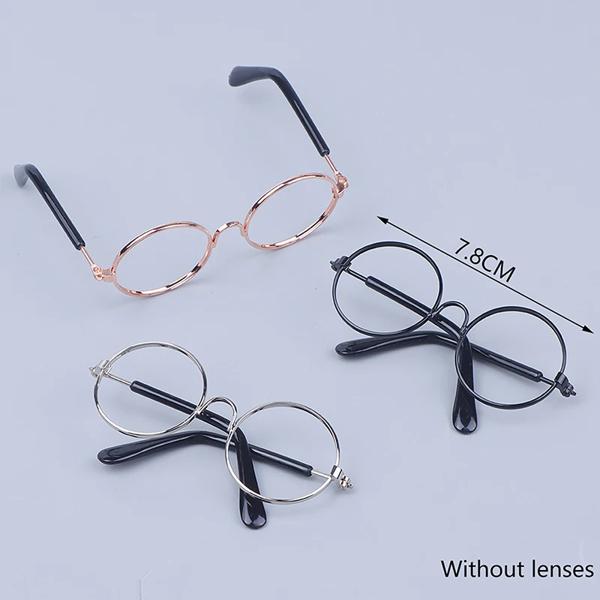 Exo人形メガネミニチュア眼鏡 人形理髪アクセサリー 高品質 3色ラウンドフレーム 眼鏡なし DIYおもちゃ 20cm