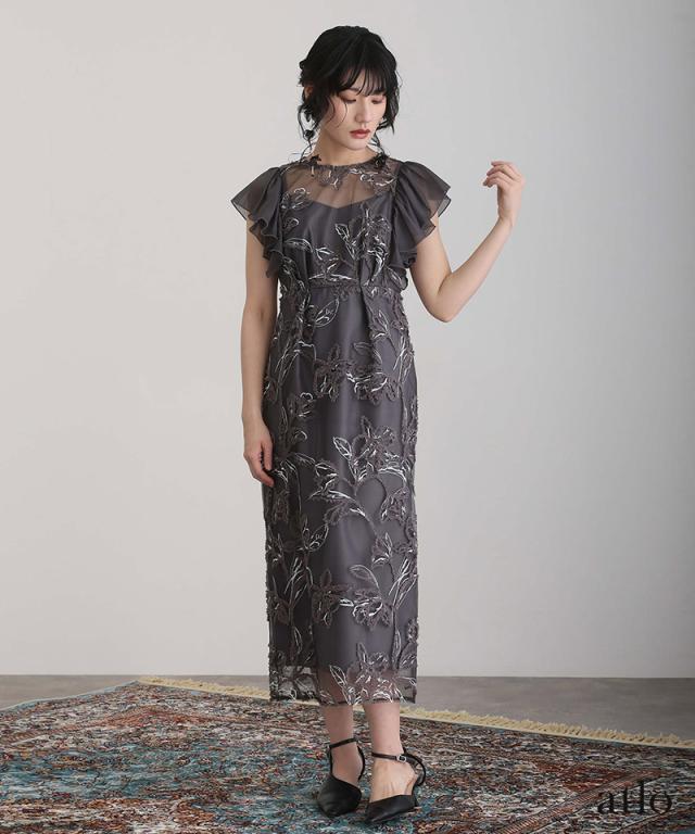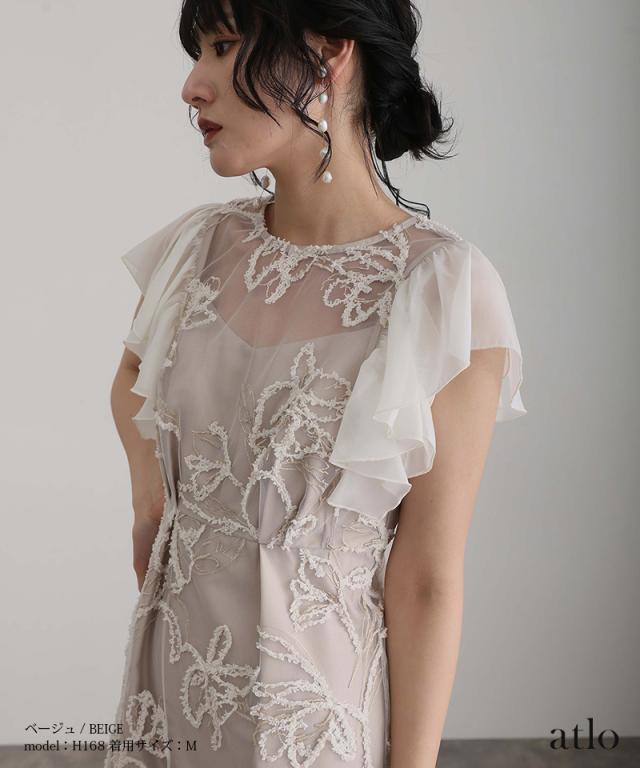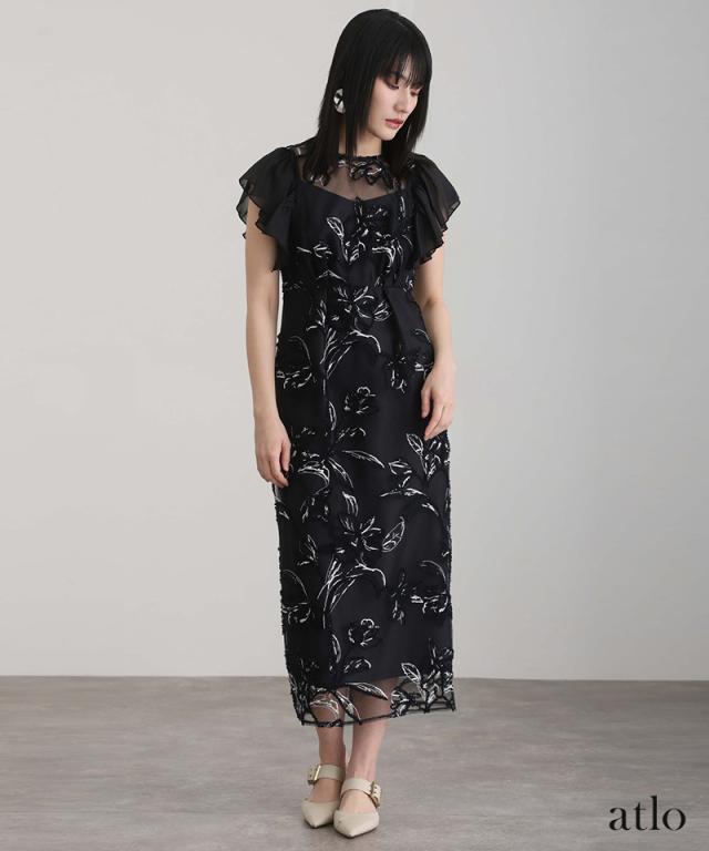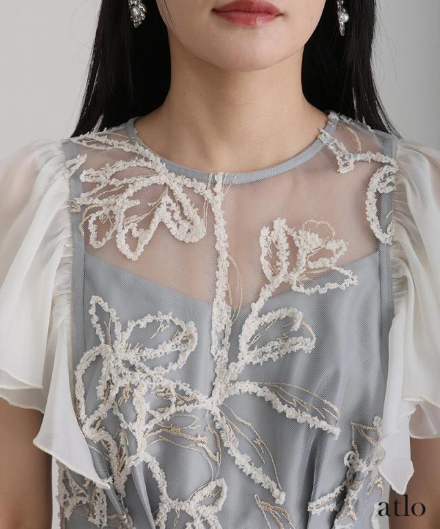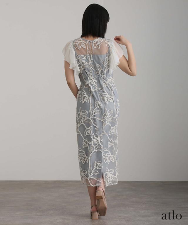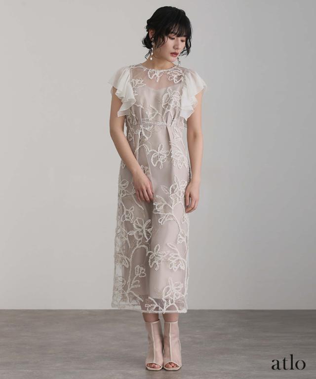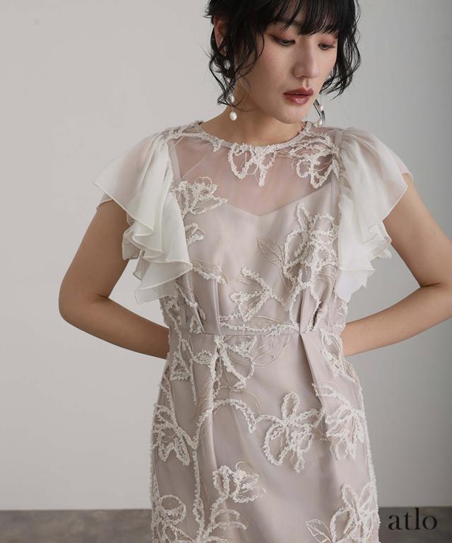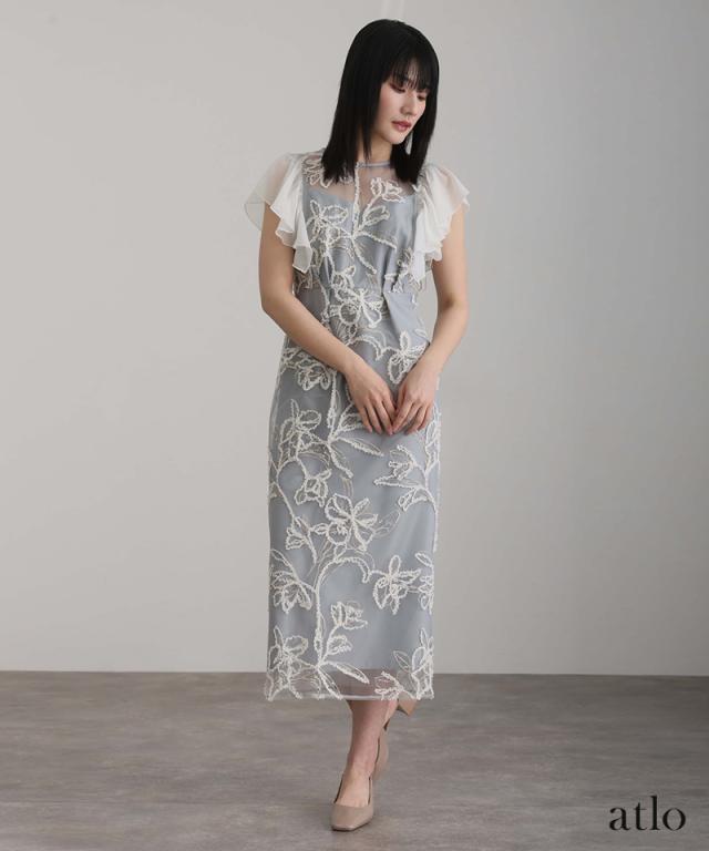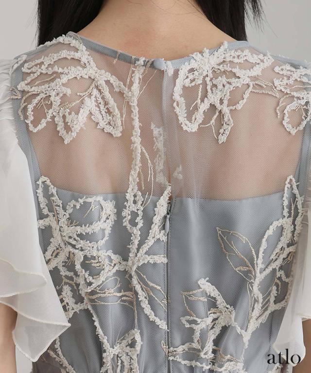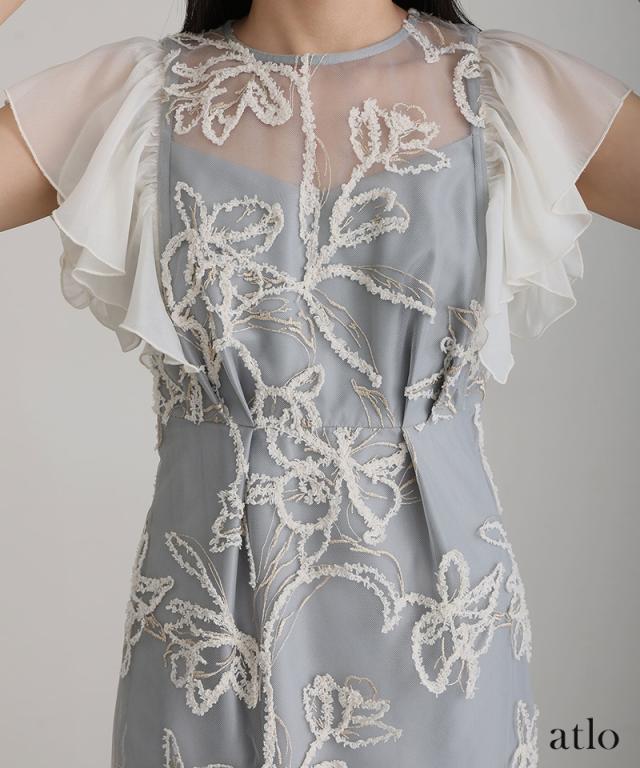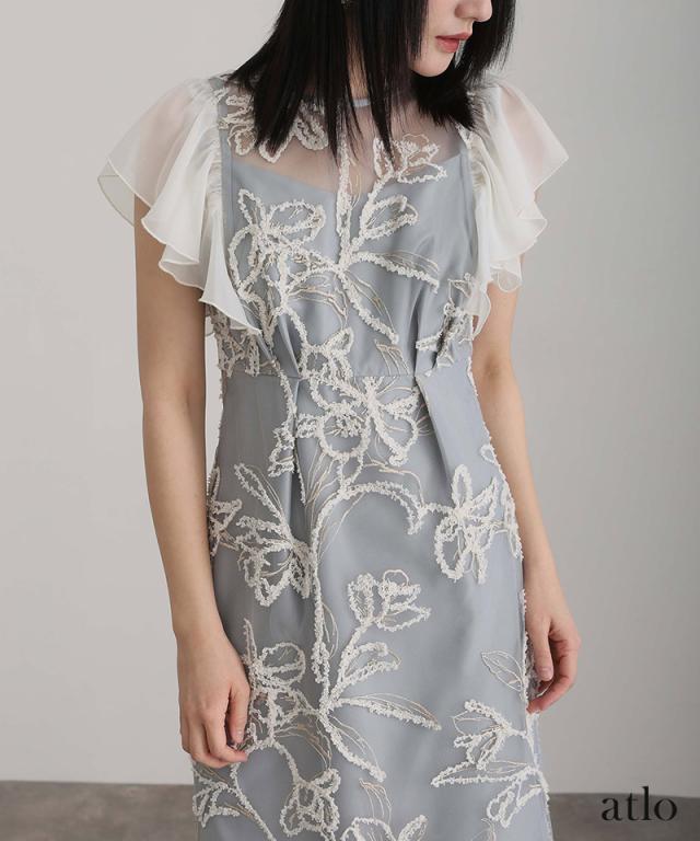フェザーフラワーダブルフレアスリーブドレス/217241978