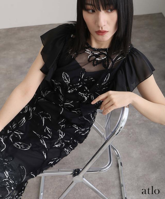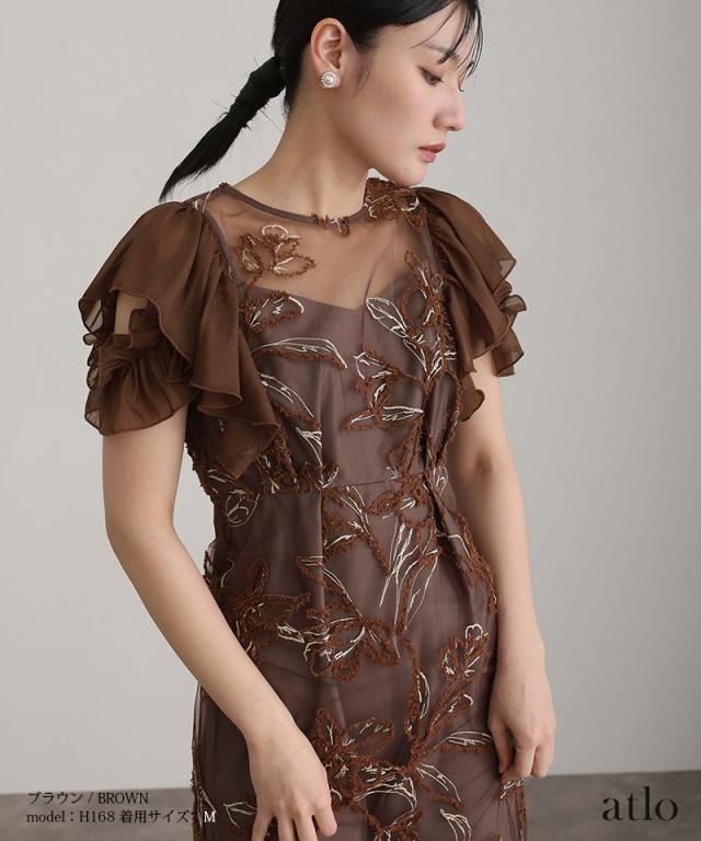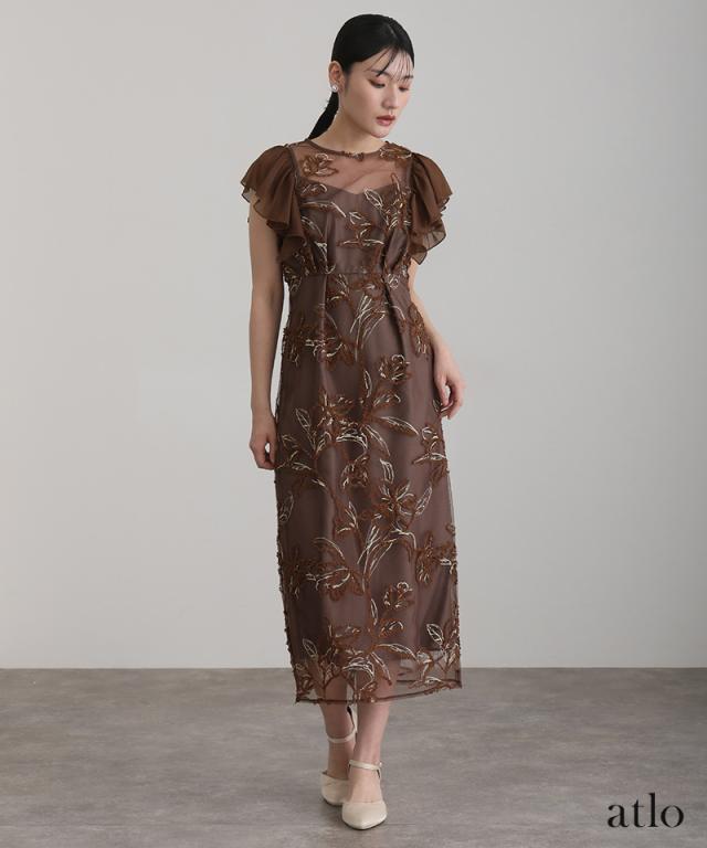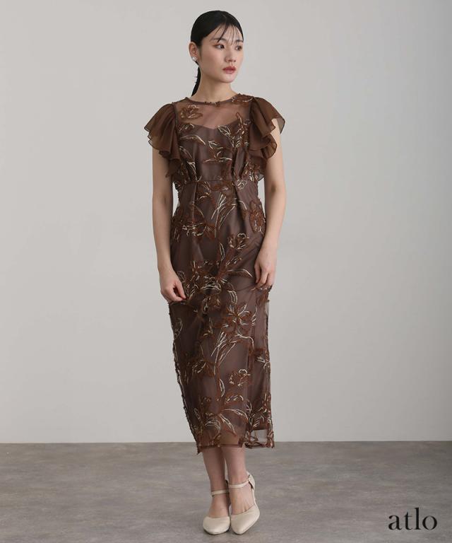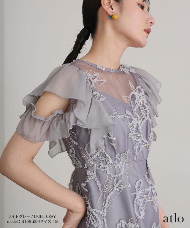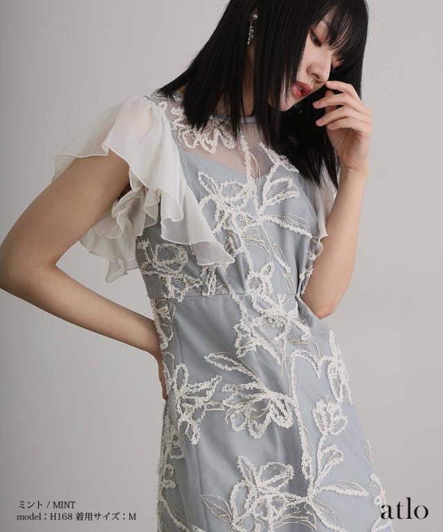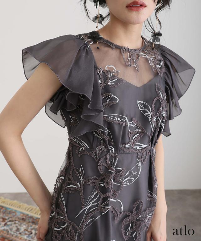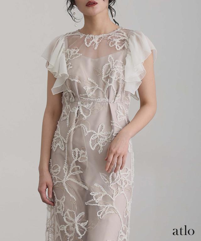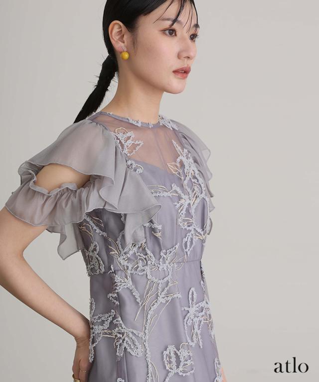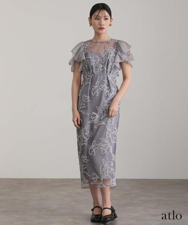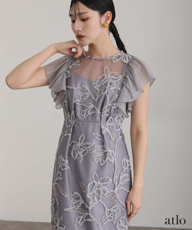 フェザーフラワーダブルフレアスリーブドレス/217241978