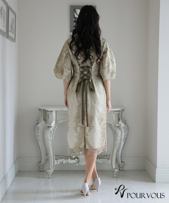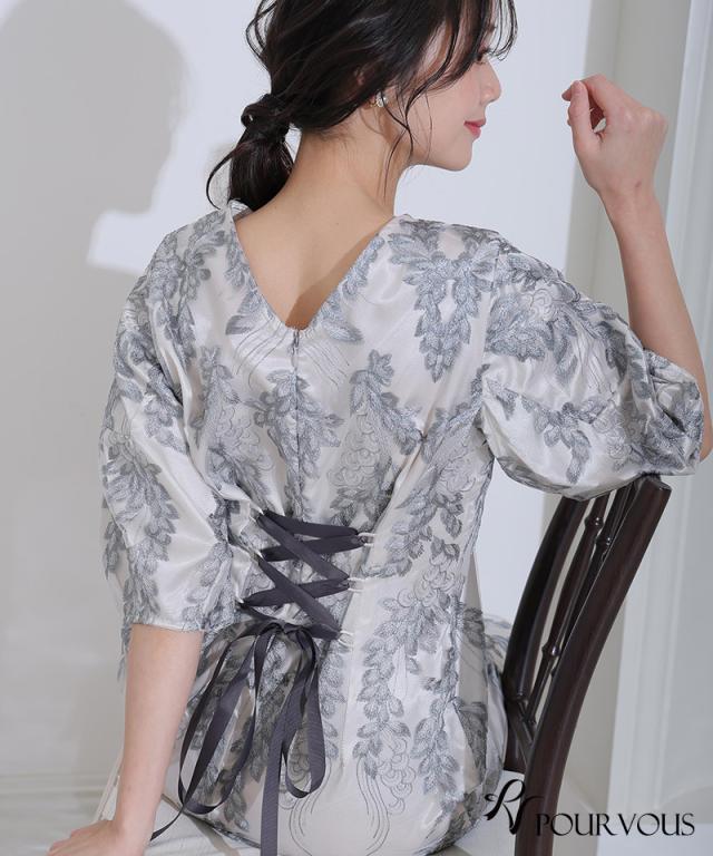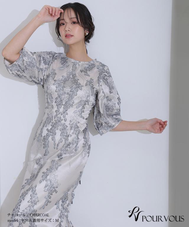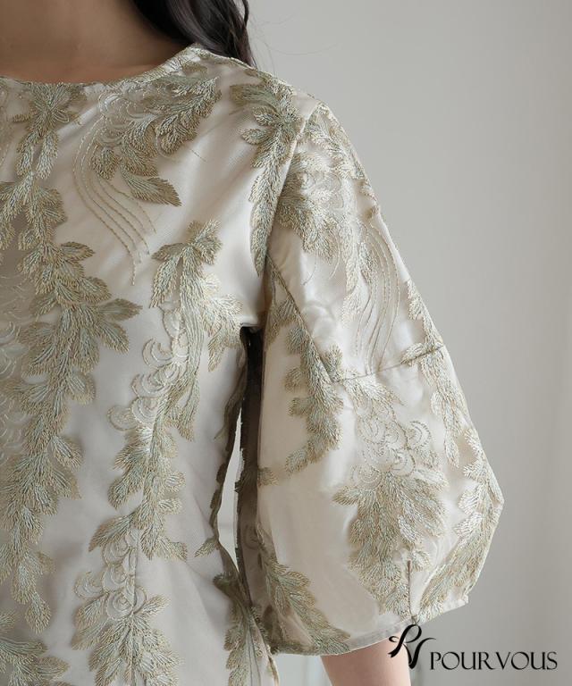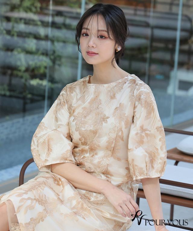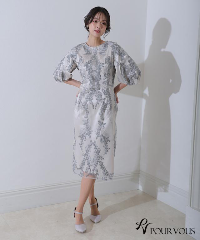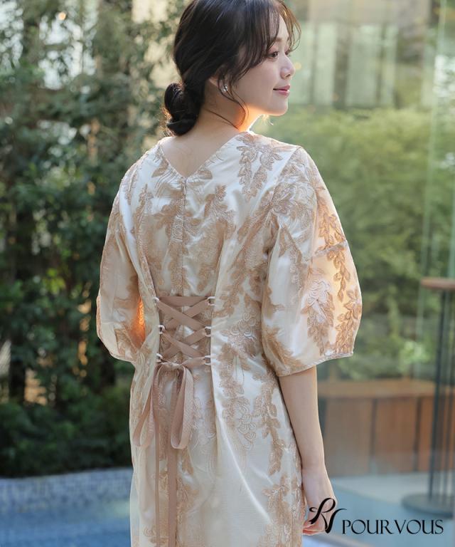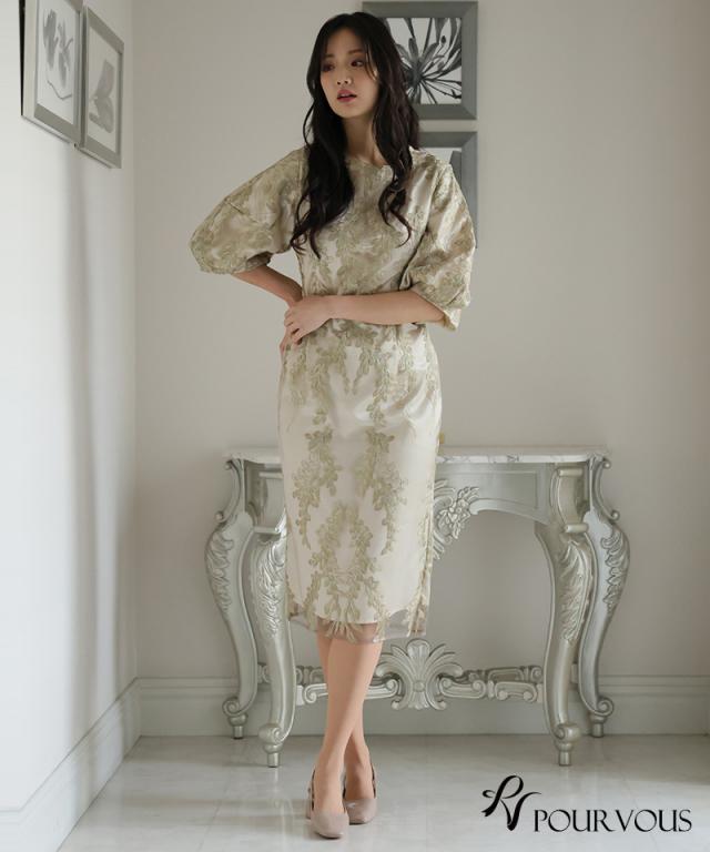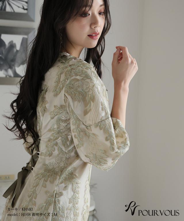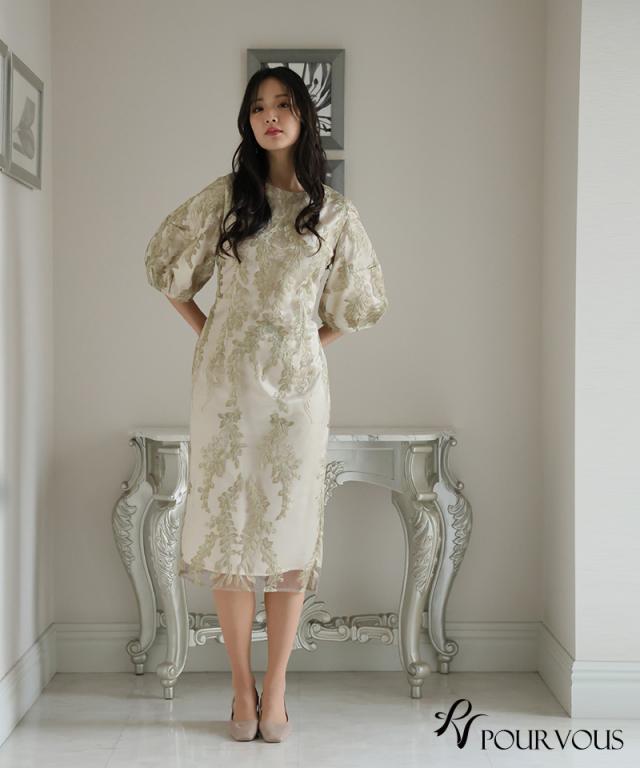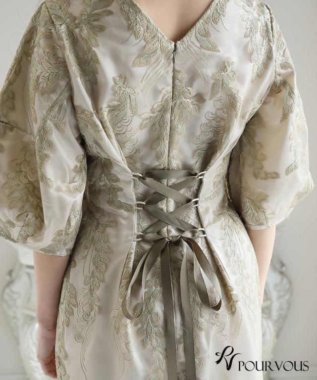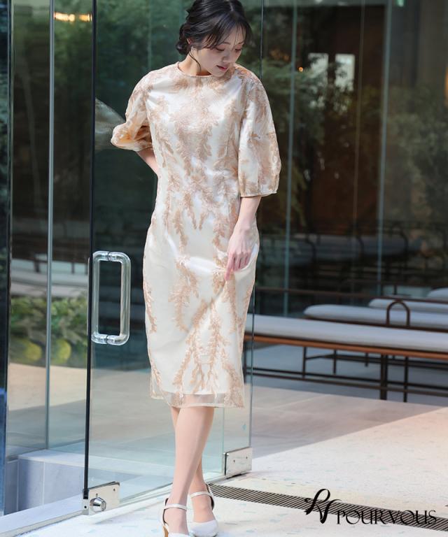 リーフ刺繍デザインコクーンドレス【287242122】10代・20代・30代・40代・50代・ドレスワンピ・フォーマルワンピ・パンツドレス・服装・ワンピース・ドレスカジュアル・ブランド・七分袖・長袖・ロング・膝丈・薄手・厚手・無地・刺繍・脚長効果・伸縮性・キレイめ・着やせ・体型カバー・スタイルアップ・レース・リボン・ドレープ・小さいサイズ・3Lや4L・かっこいい・かわいい・即日発送・送料無料・結婚式・婚活・披露宴・顔合わせ・発表会・演奏会・二次会・同窓会・お呼ばれ・食事会・謝恩会・親族・七五三・お宮参り・冠婚葬祭・弔事・女子会・韓国・デート・入学式・卒業式・入園式・卒園式・ママ・ピアノ・マタニティー・セレモニー・セレブ・パーティー