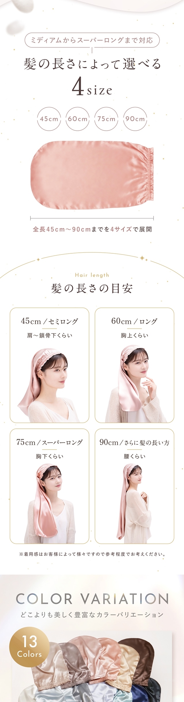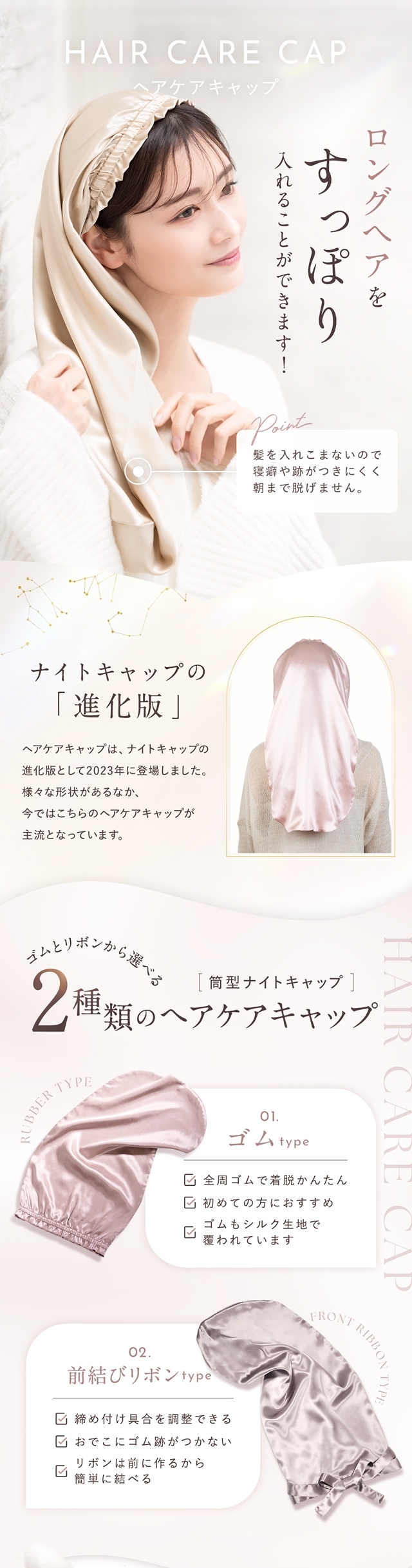 睡眠中の髪をしっとり保湿し、乾燥や刺激からからやさしく守ります。