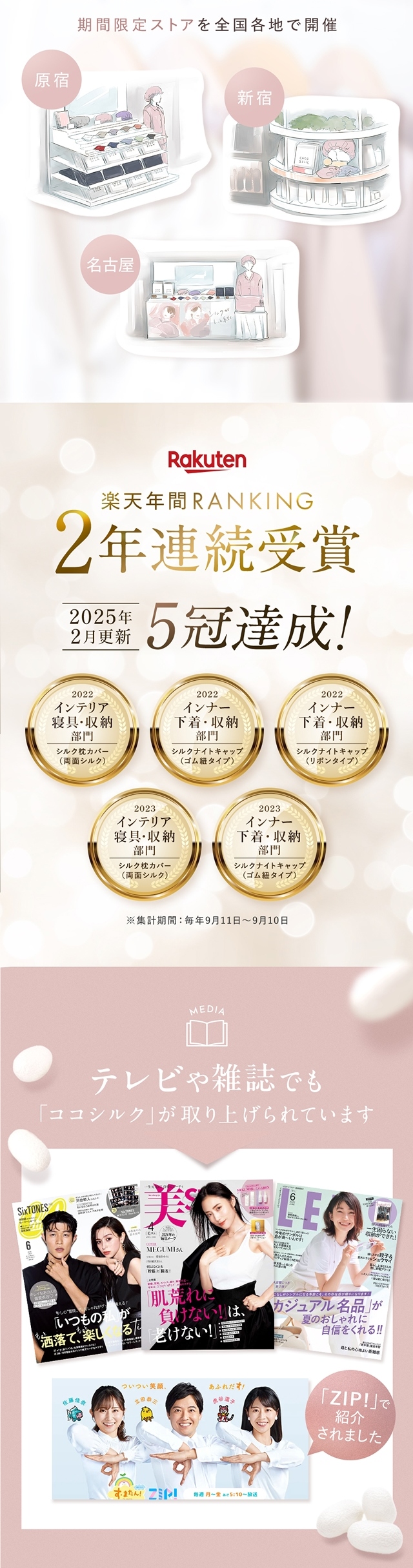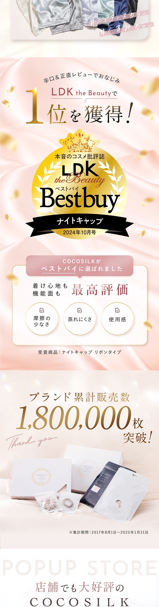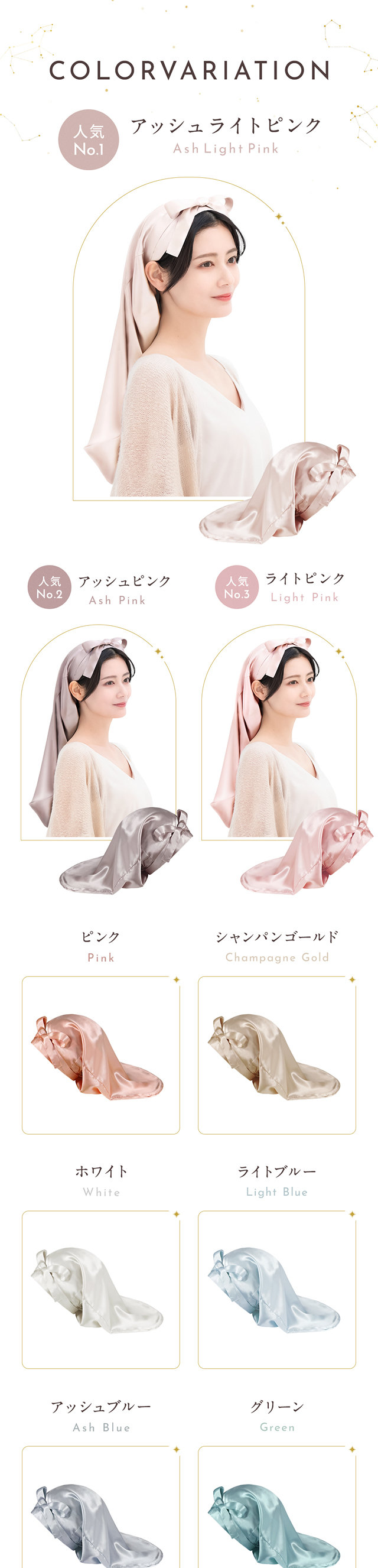 またシルクには天然の防菌作用があり、気になる髪の匂いを防ぎます。寝ぐせ防止にも効果があります。