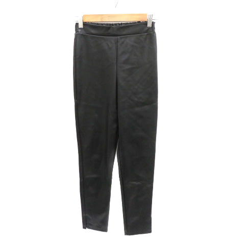 【中古】チアフル cheerful フェイクレザーパンツ テーパードパンツ アンクル丈 36 S 黒 ブラック /YK18 レディース