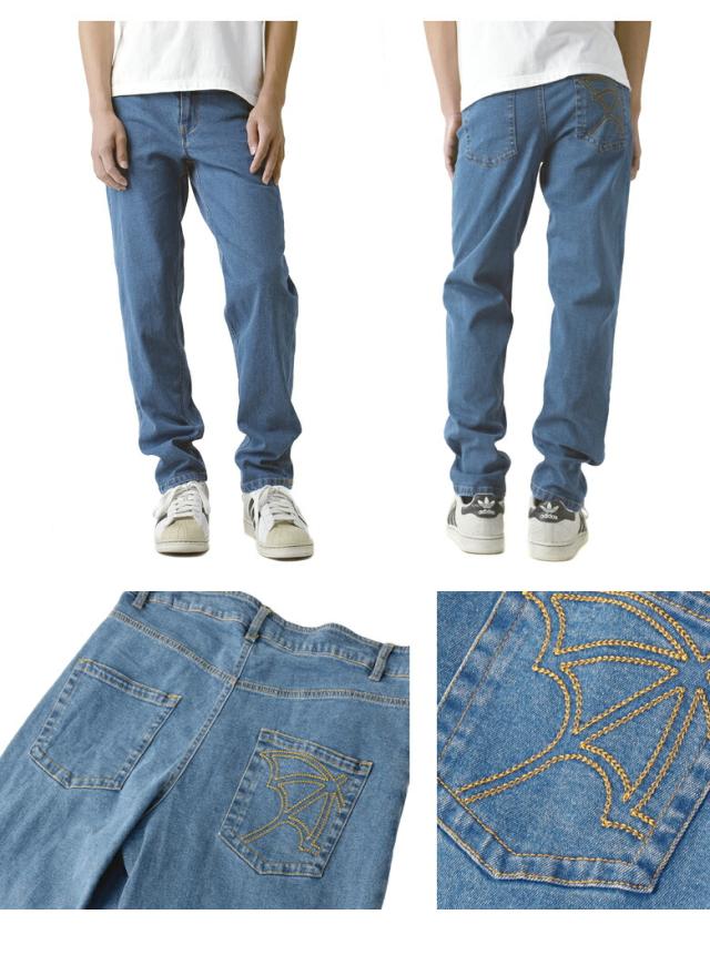 送料無料☆ポケットのロゴステッチが印象的なストレッチデニム
