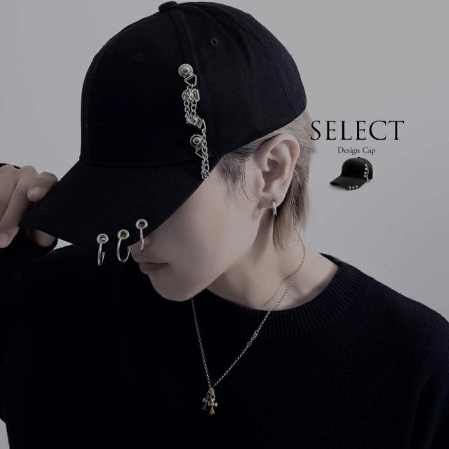 CAP キャップ メンズ ブランド ハトメCAP チェーン 深め 大きいサイズ ゆったり ヴィジュアル系 ビジュアル系 V系 レディース ユニセックス 帽子 サブカル系 ストリート系 ピープス系 韓国系 黒 ブラック チェーン ハトメ 20代 30代 40代 メンズファッション [SBSHA24-17]