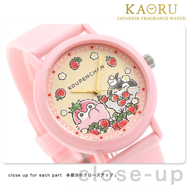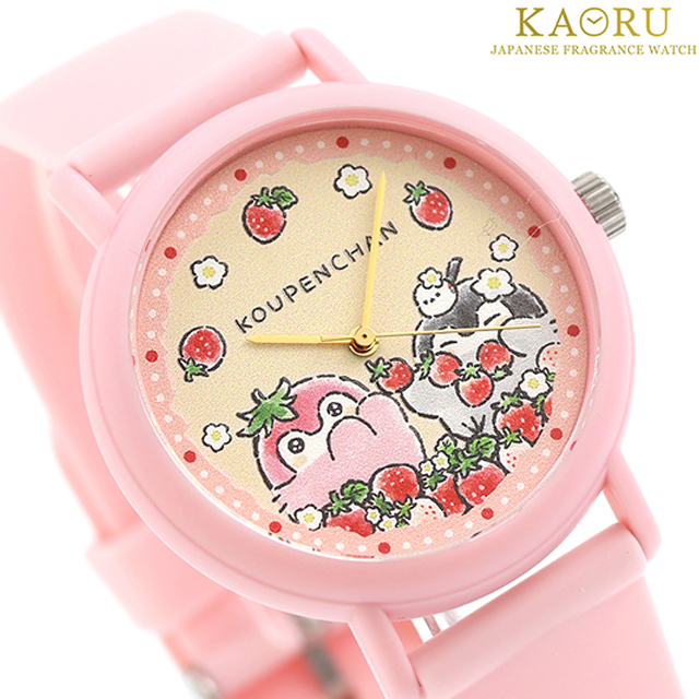 カオル コウペンちゃん×KAORU しあわせいちごver -いっしょ- ストロベリーの香り クォーツ 電池式 腕時計 ブランド レディース KAORU KAORU013P1 アナログ クリーム ピンク 日本製 おしゃれ 防水 かわいい プレゼント 女性 実用的
