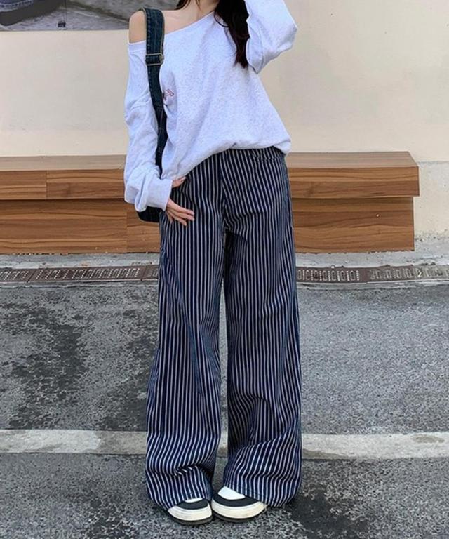 ストライプワイドデニムパンツ レディース デニム ボトムス ストライプ ワイド